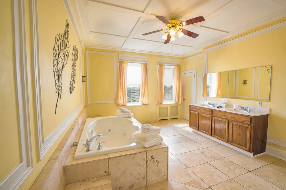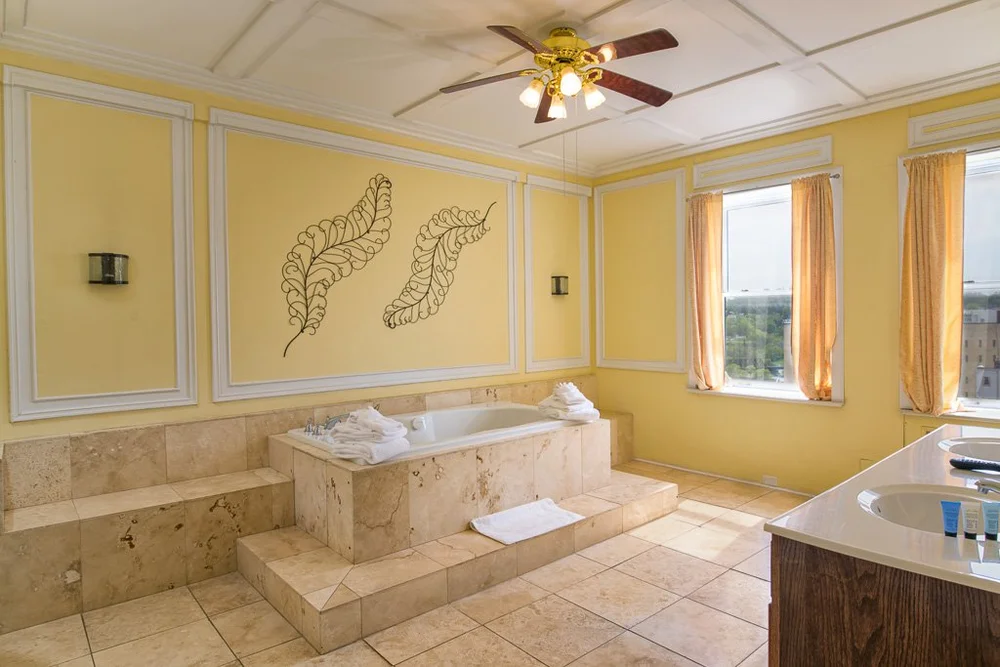 The JFK Suite is as decadent as it gets. The room is equipped with a king sized bed and upgraded high-thread count linens. The bathroom comes with an extra large bathtub and standup shower. Other amenities include a flat screen tv, a mini fridge, an in-room bar, and a luxury seating area. This is the room JFK stayed in when he visited the George Washington long ago. Even just standing on the presidential seal is a riveting experience. Soak up the history and treat yourself to a night in this top of the line suite.